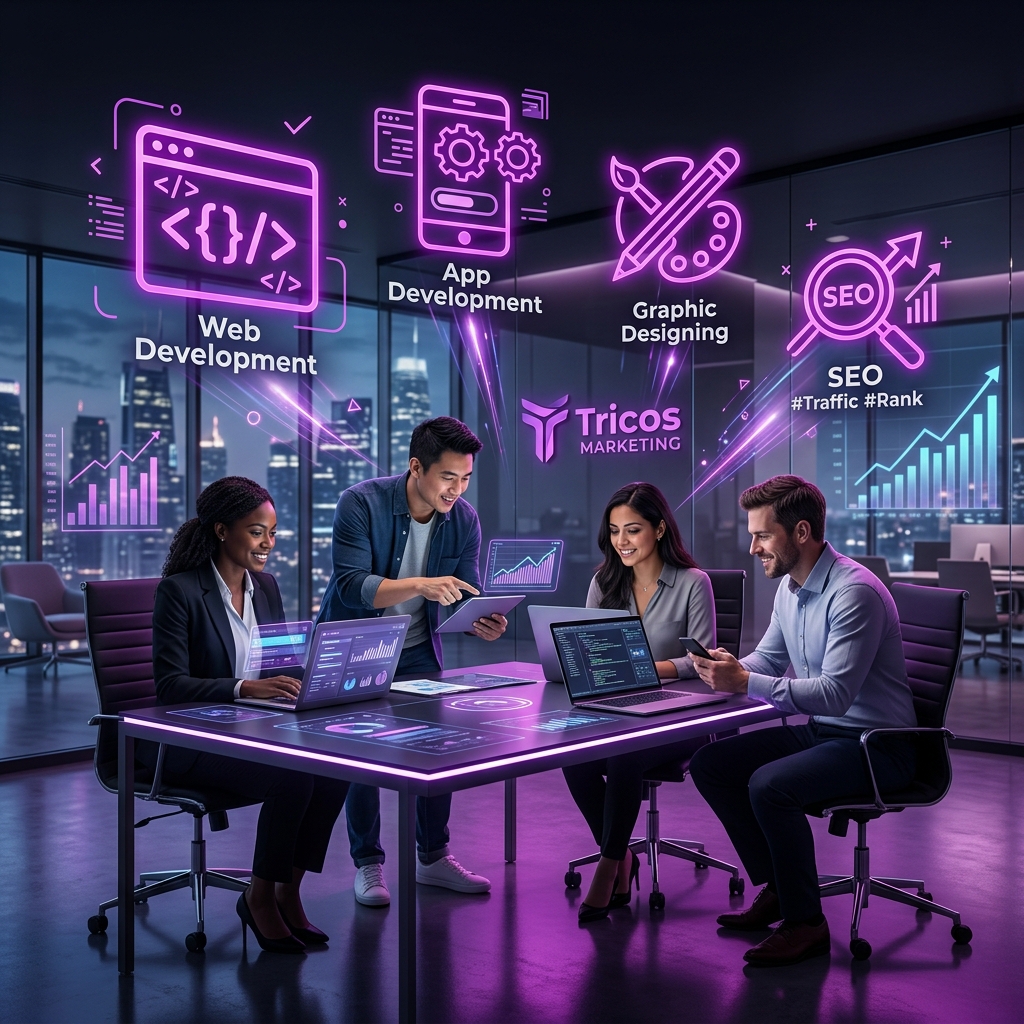 Tricos Marketing is a professional digital marketing agency in Islamabad, Pakistan helping businesses build a strong online presence and grow their revenue through result-driven digital solutions. We specialize in website development, search engine optimization (SEO), mobile app development, graphic designing, and logo designing.